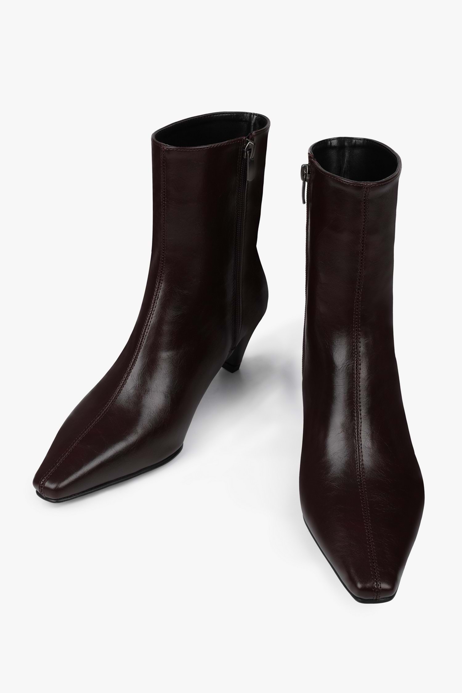 Kadın Lulu Bordo Cilt Kısa Topuklu Bot