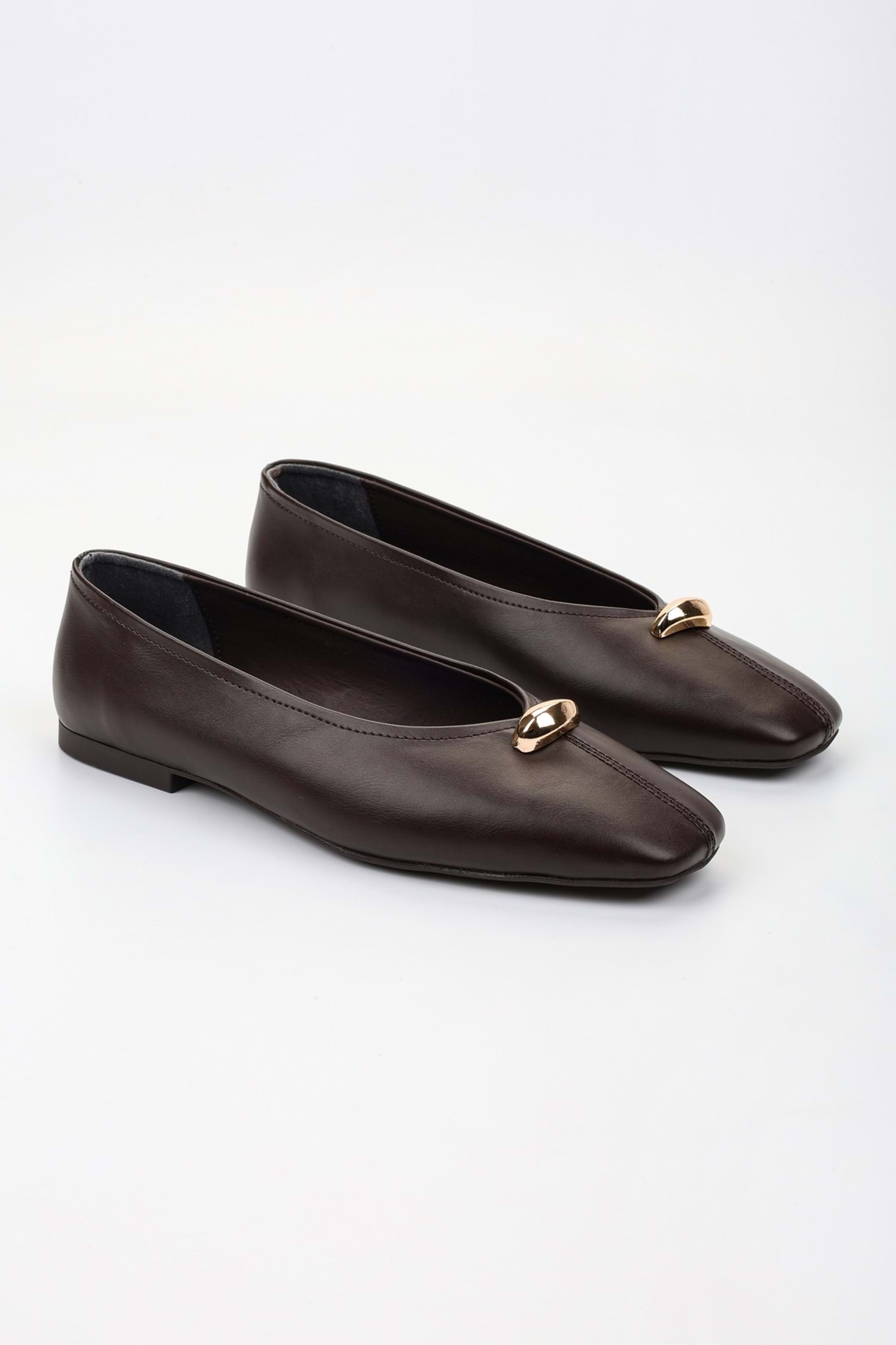Kadın Aurel Kahve Cilt Gold Aksesuar Detaylı Babet