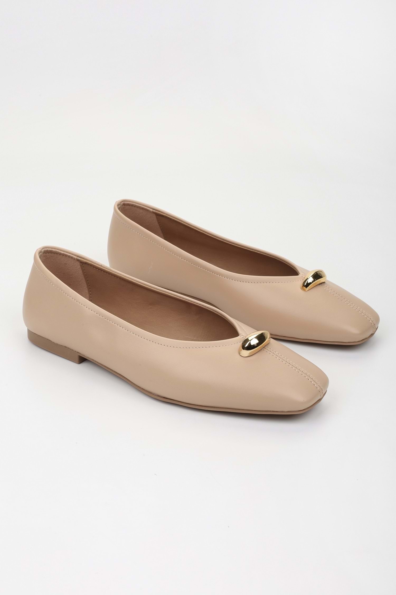 Kadın Aurel Nude Cilt Gold Aksesuar Detaylı Babet