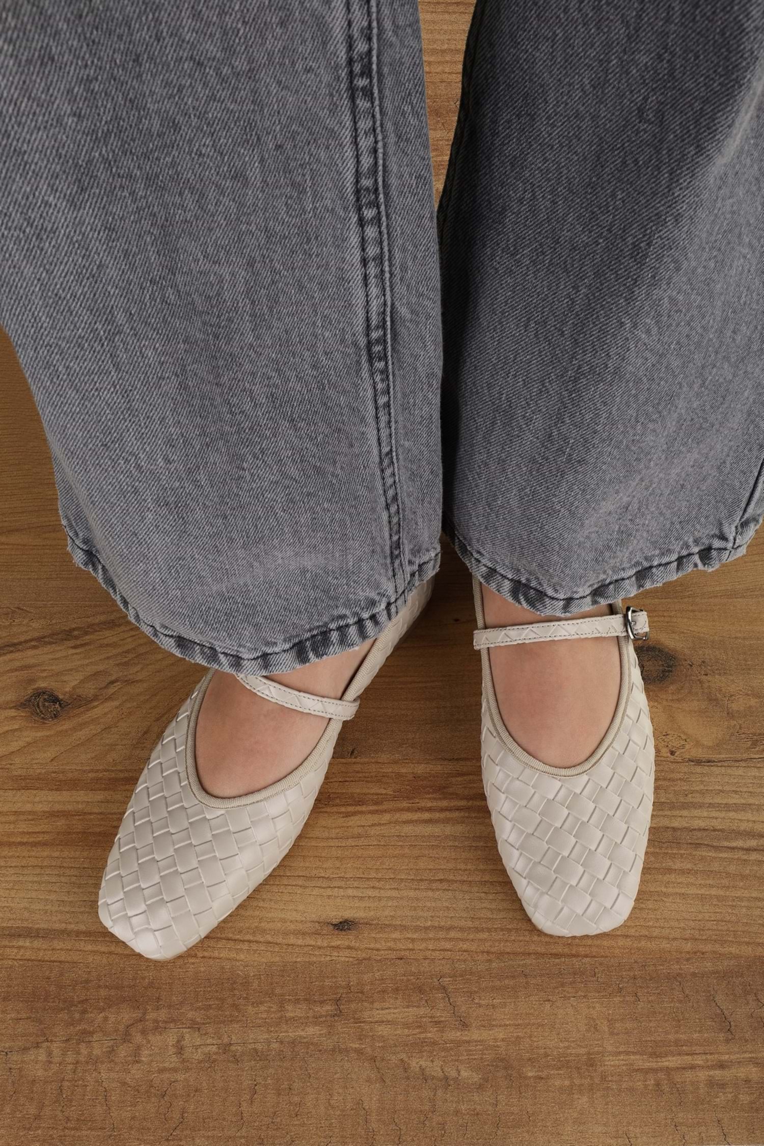 Kadın Cheeky Ten Cilt Örgü Görünümlü Babet