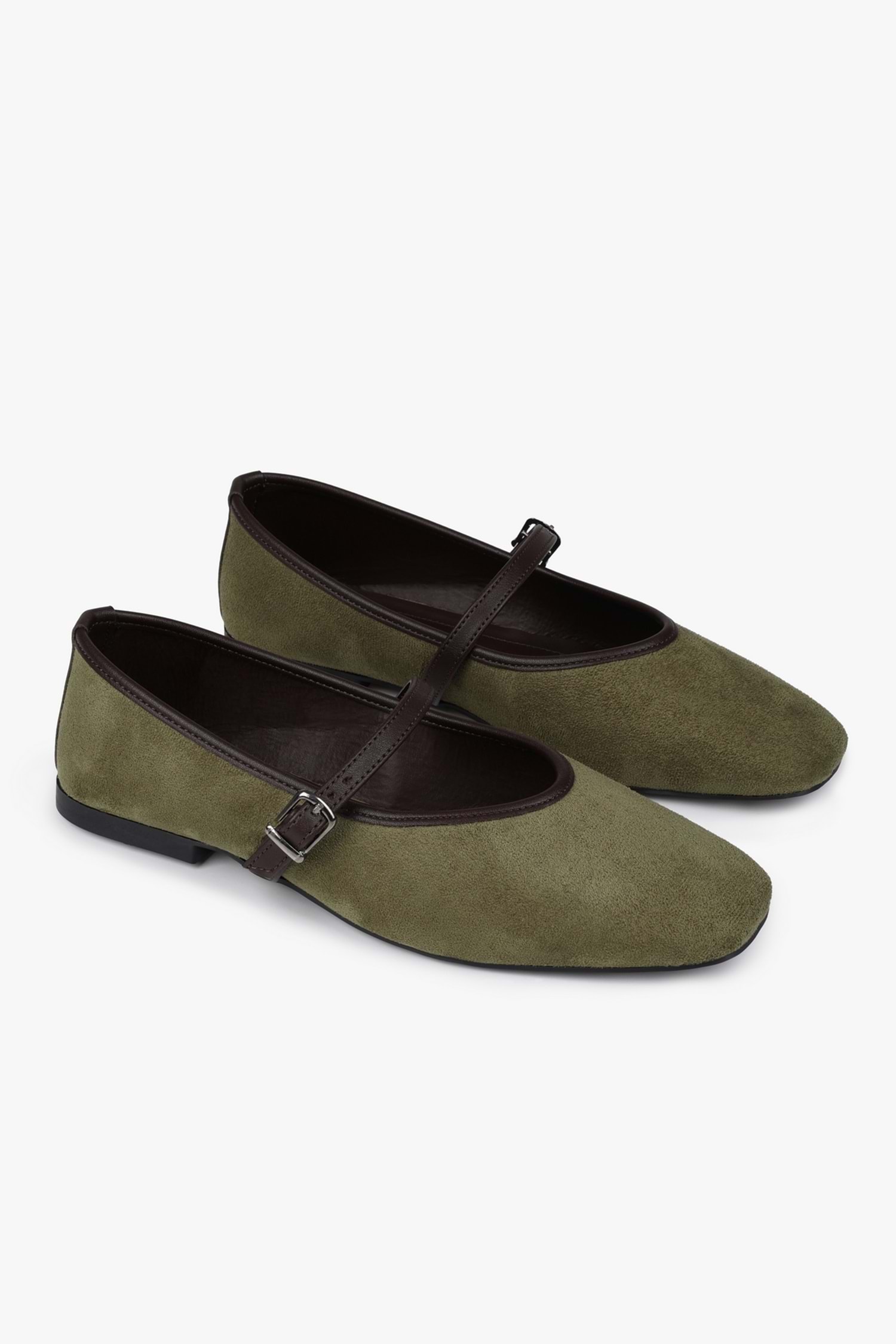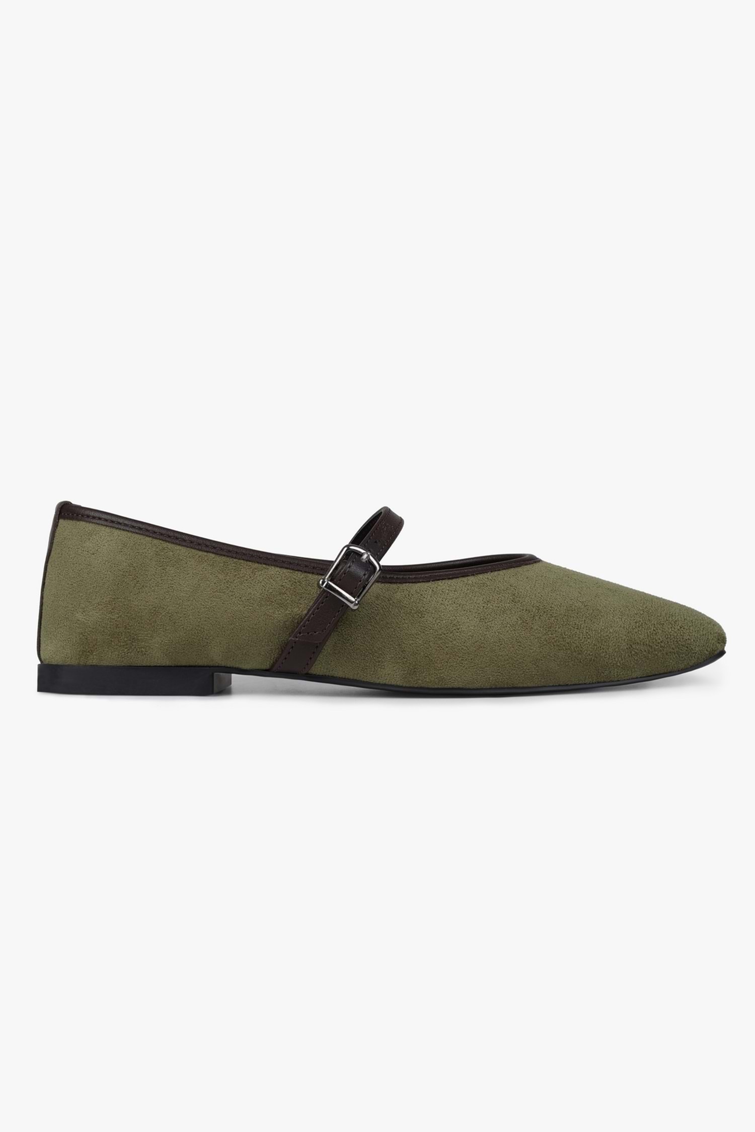 Yumuşak süet dokusu, kare burun şıklığı ve ince bilek bandı ile her adımında naif ama iddialı bir duruş sunar.