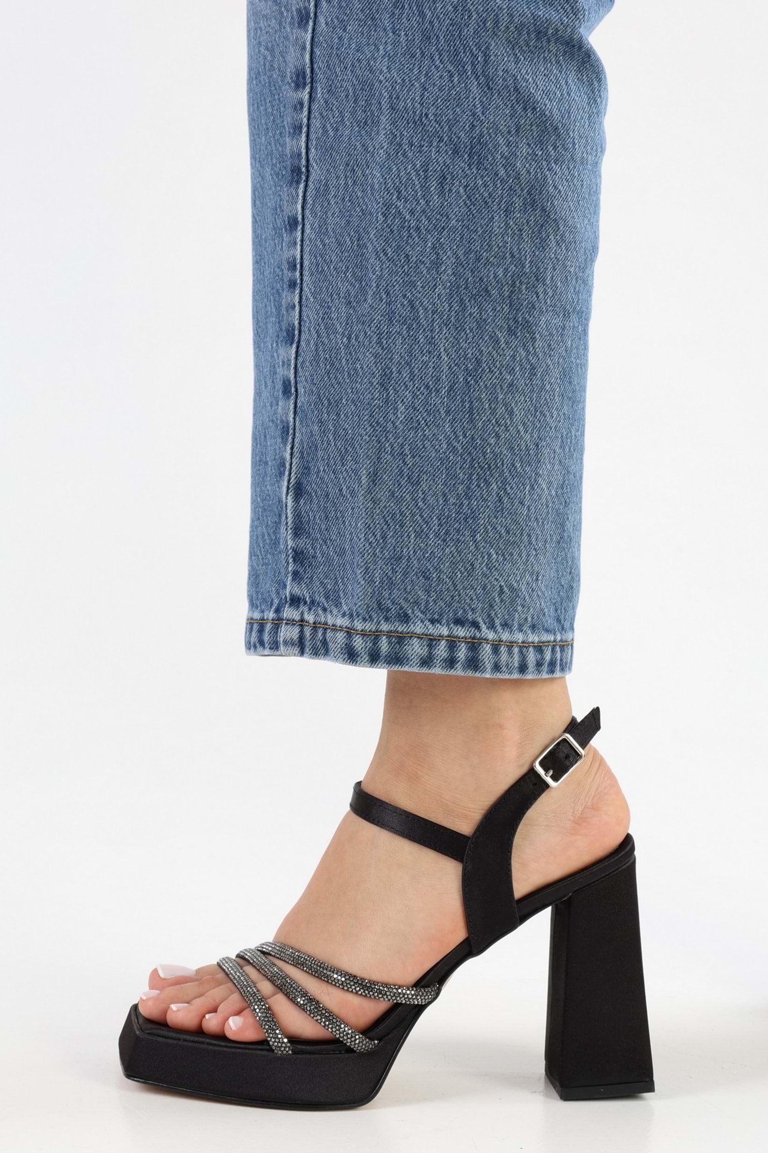 Kadın Merdia Siyah Saten Taşlı Platform Topuklu Ayakkabı