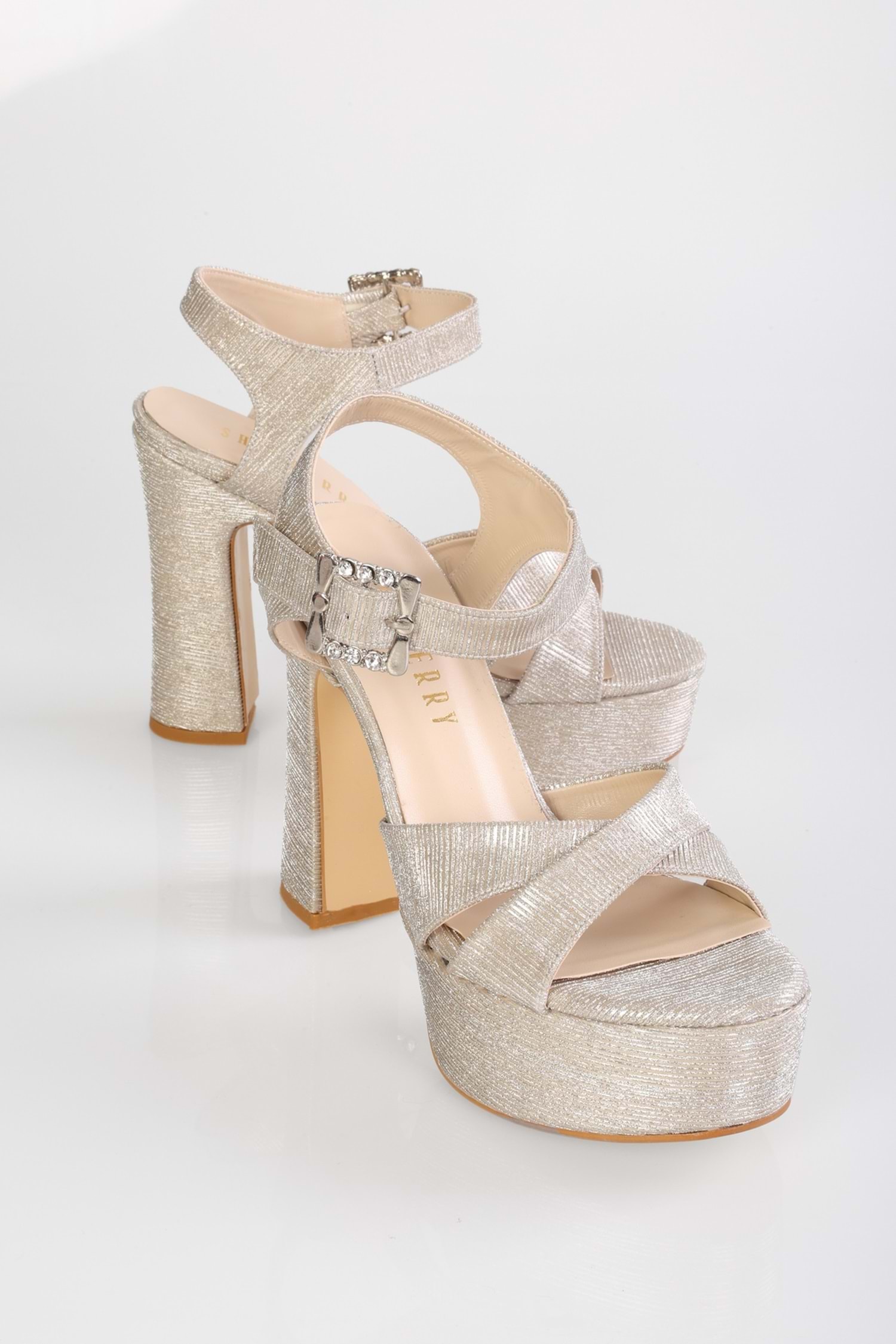 Kadın Rhine Altın Sıvama Simli Platform Topuklu Ayakkabı
