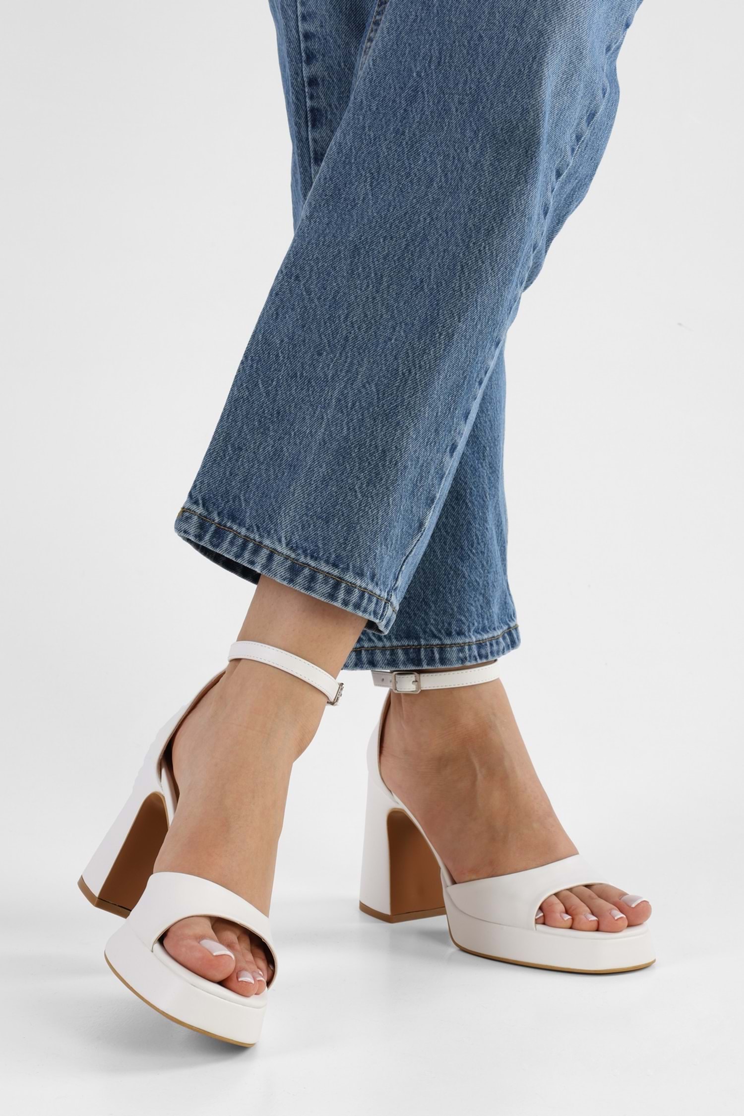 Kadın Sway Beyaz Cilt Platform Topuklu Ayakkabı