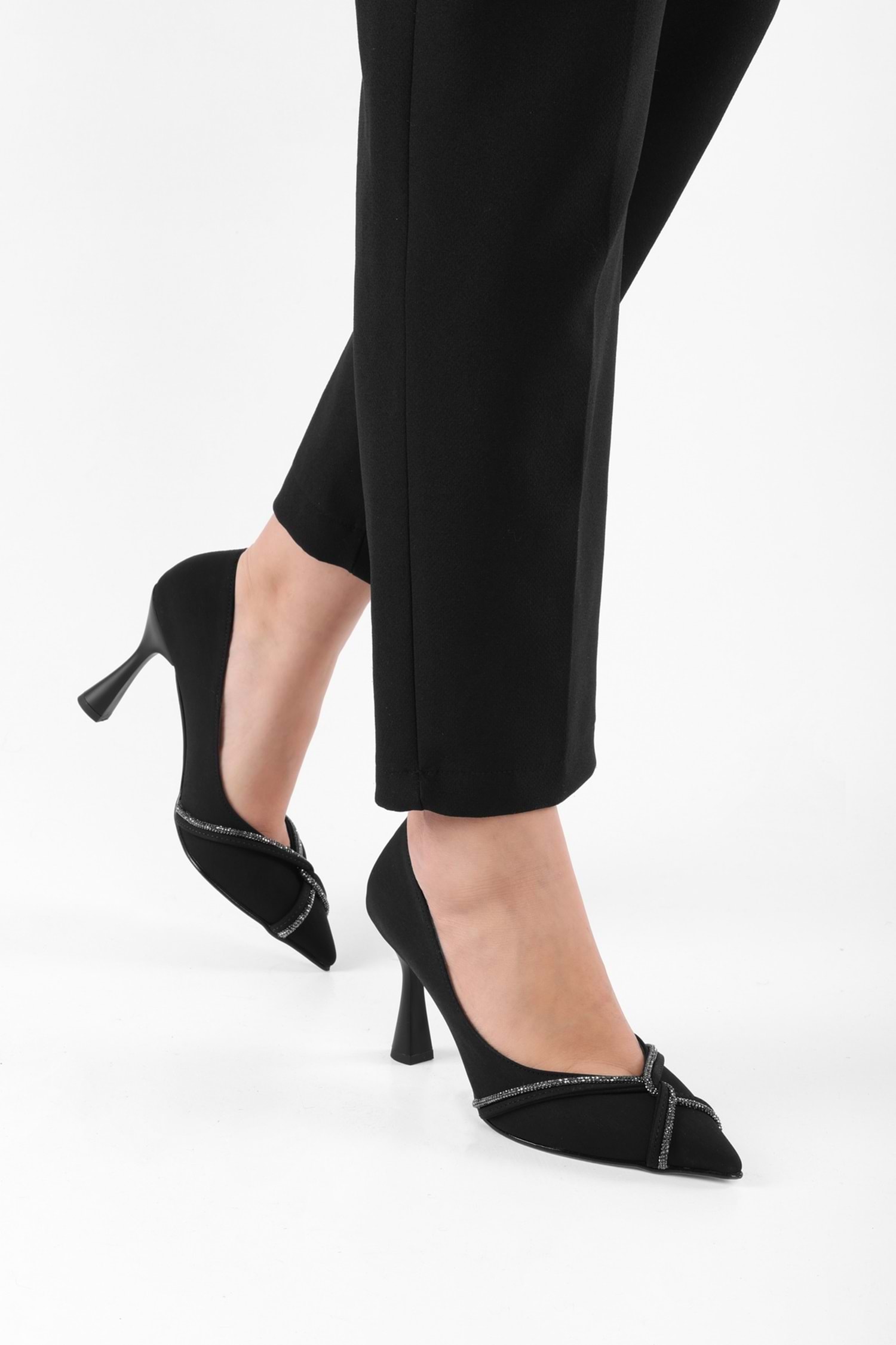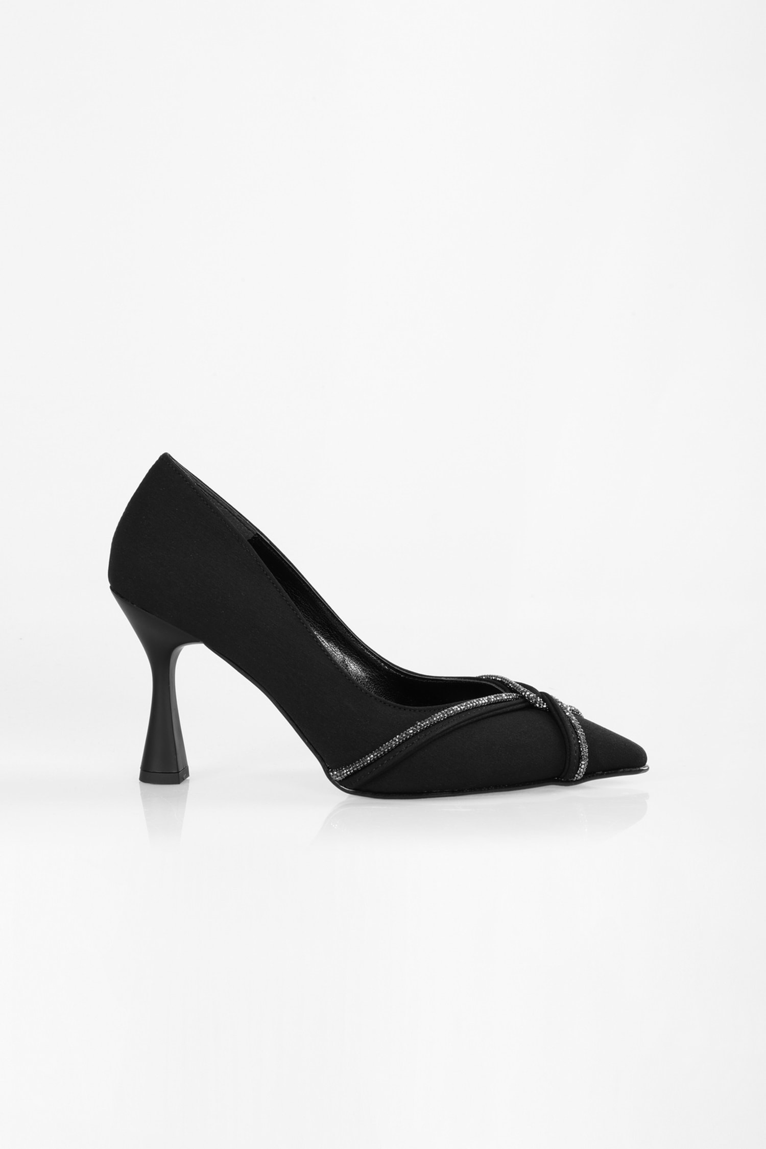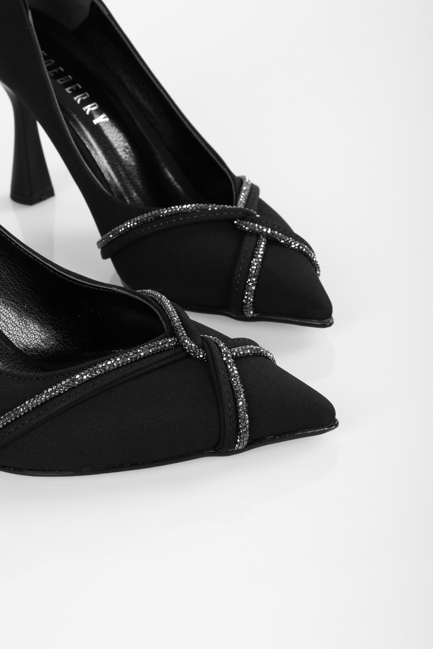 Kadın Avenue Siyah Mat Saten Taşlı Topuklu Ayakkabı Stiletto
