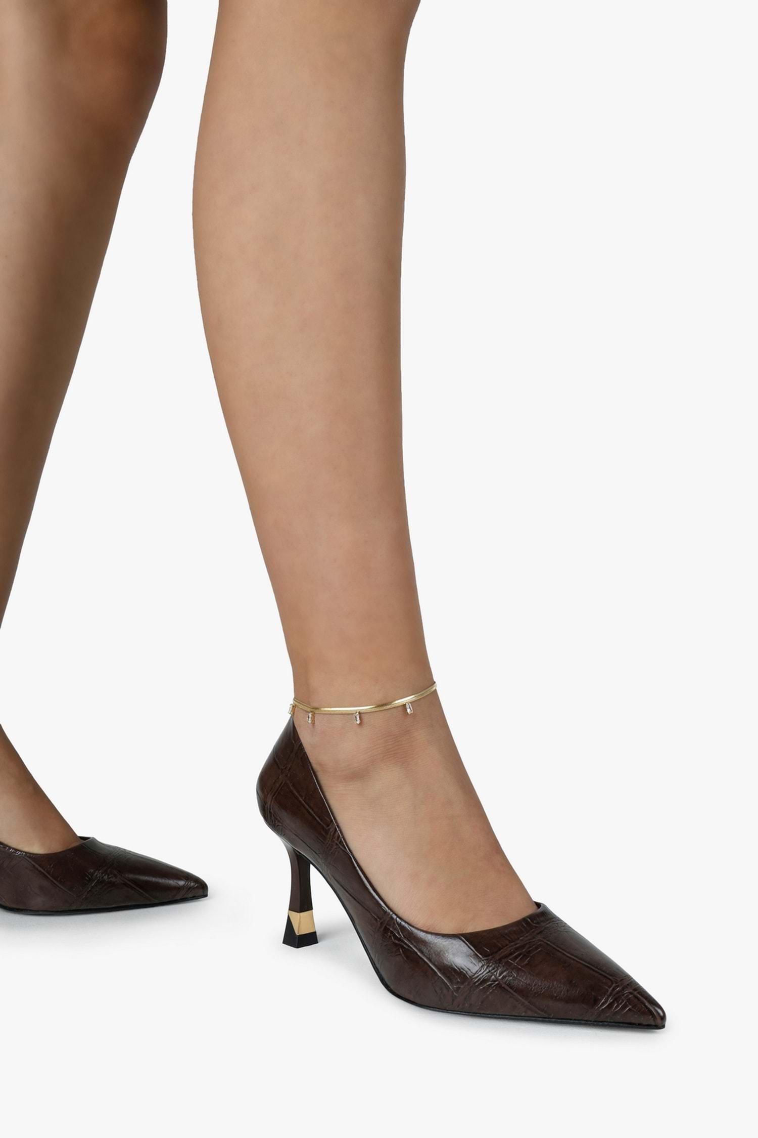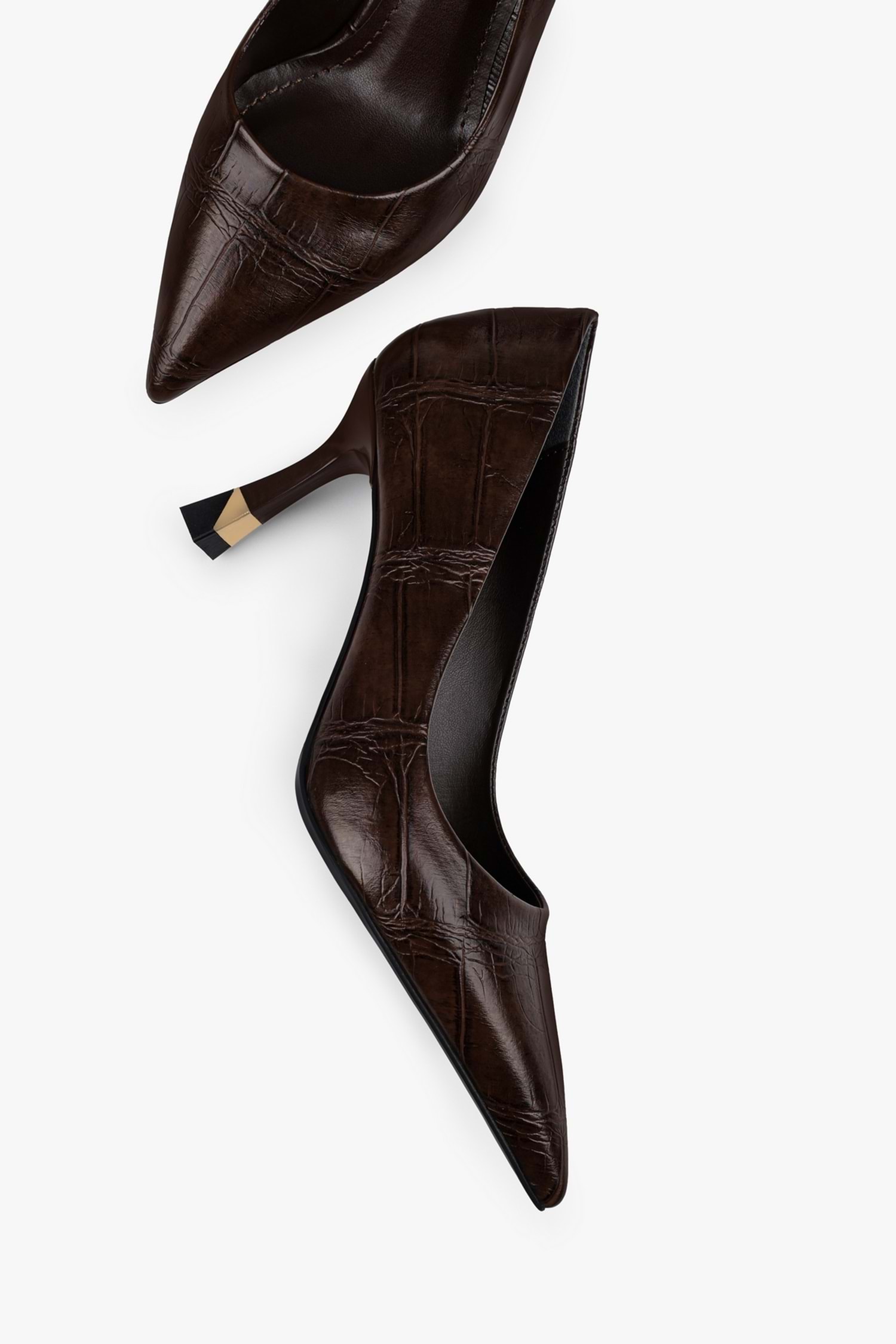 Gilda stilettomuz, parlak dokulu yüzeye sahip, sivri burun formunda tasarlanmış ve altın renk detaylı özel form ince topuk yapısıyla tamamlanmış bir modeldir.