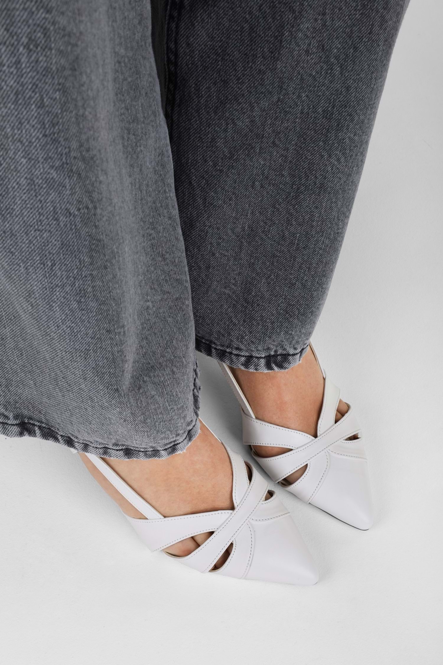 Kadın Liora Beyaz Cilt Kısa Topuklu Stiletto