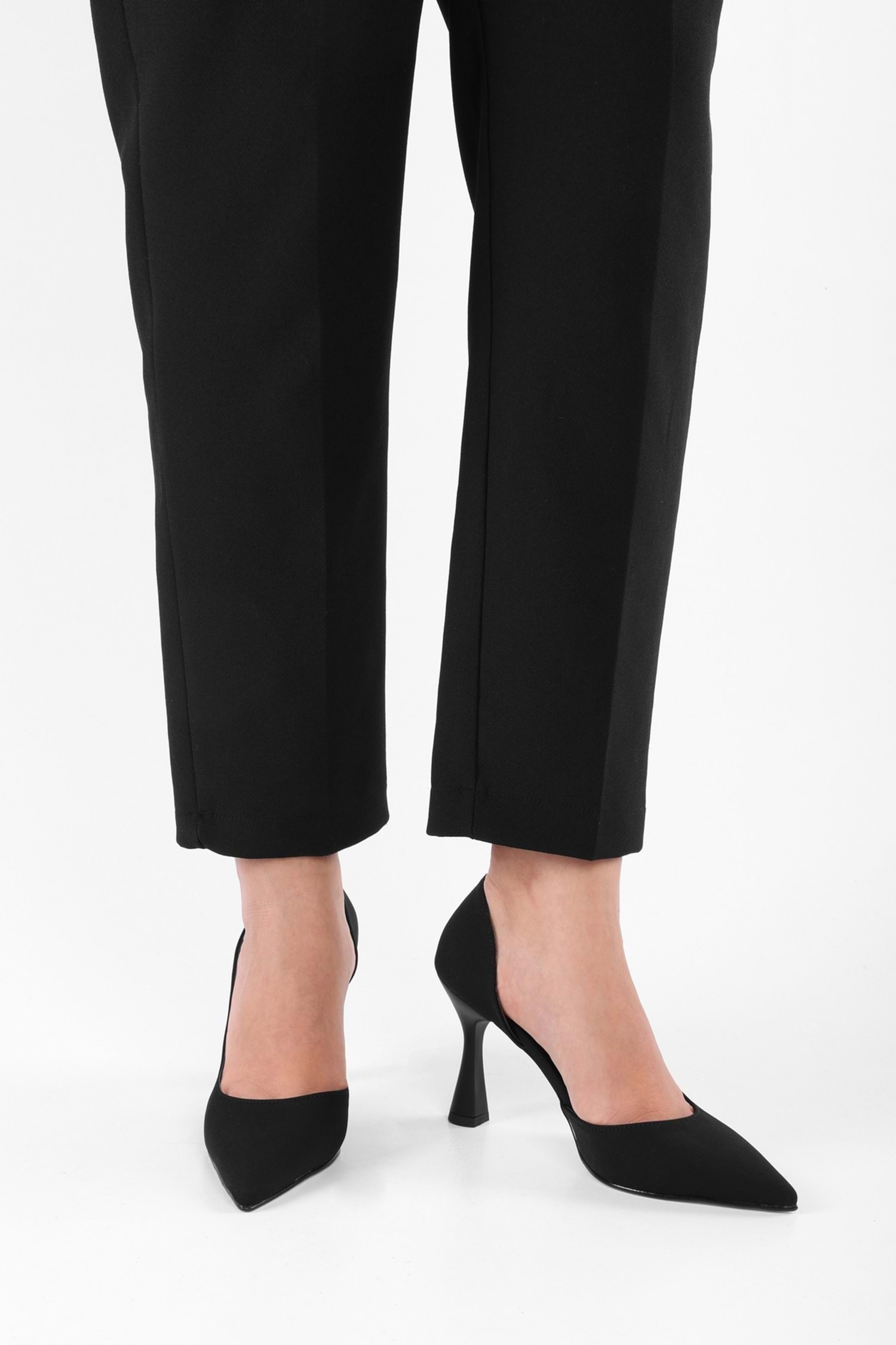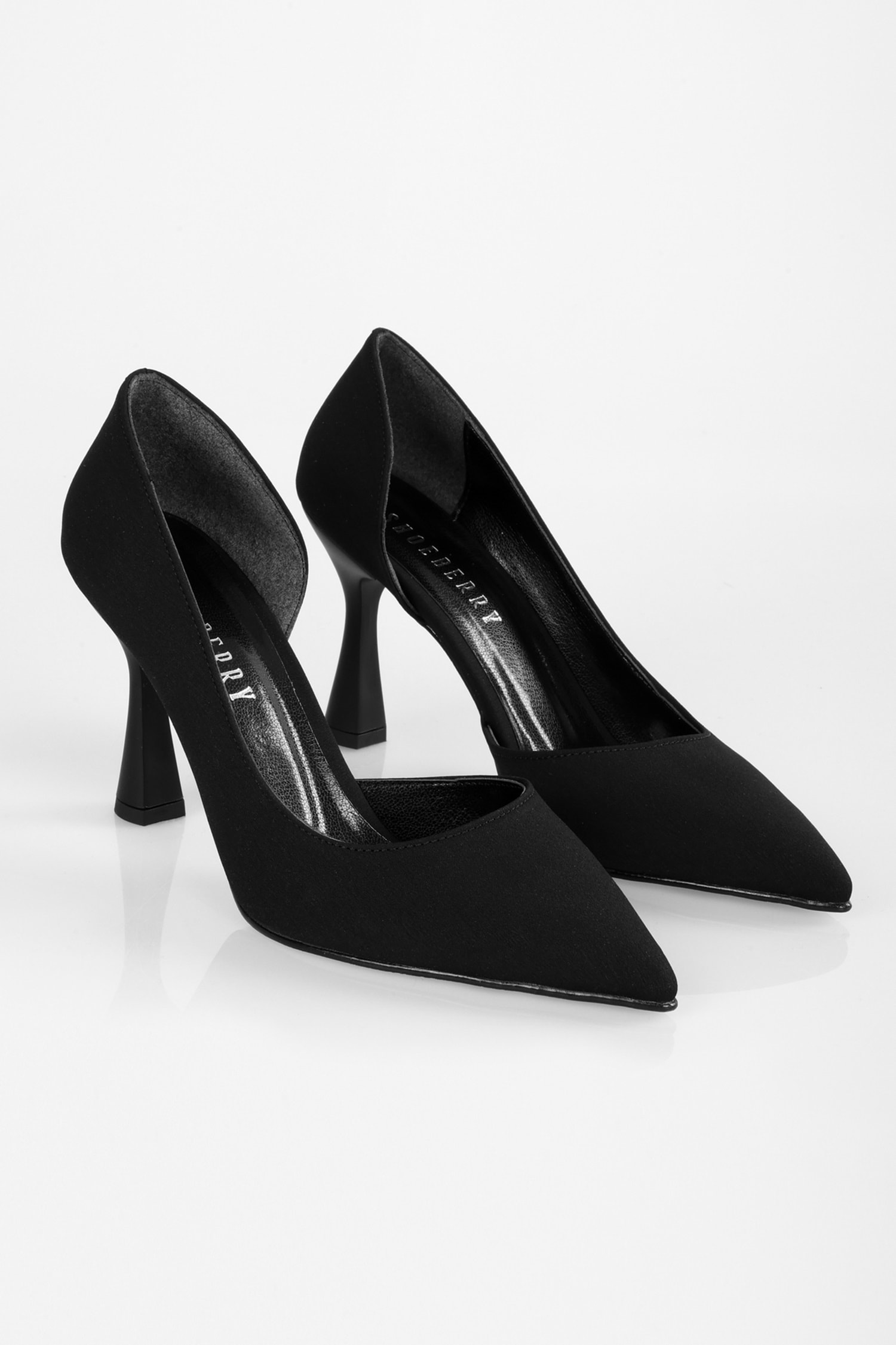 Kadın Lucas Siyah Mat Saten Asimetrik Kesim Topuklu Ayakkabı Stiletto