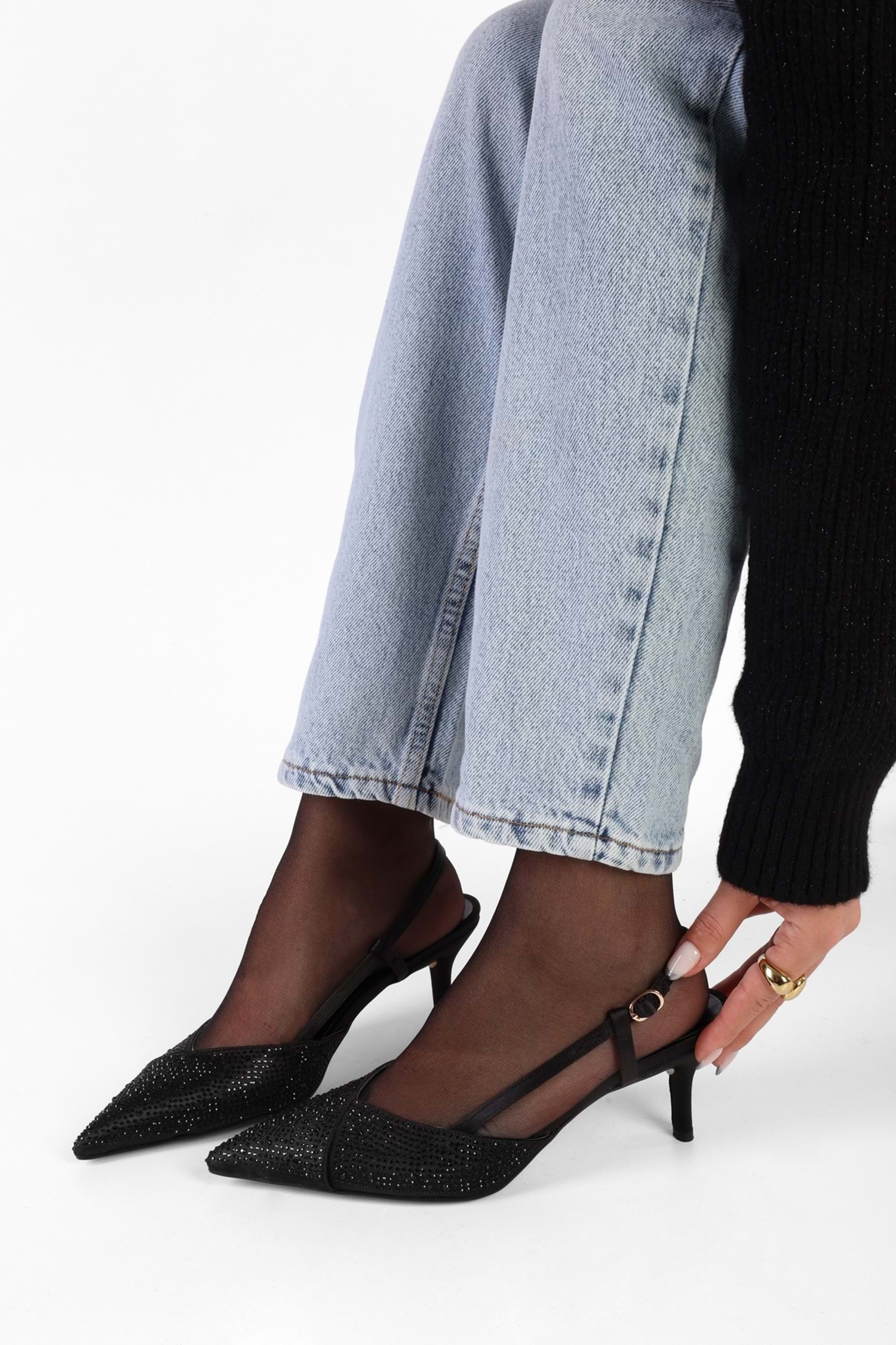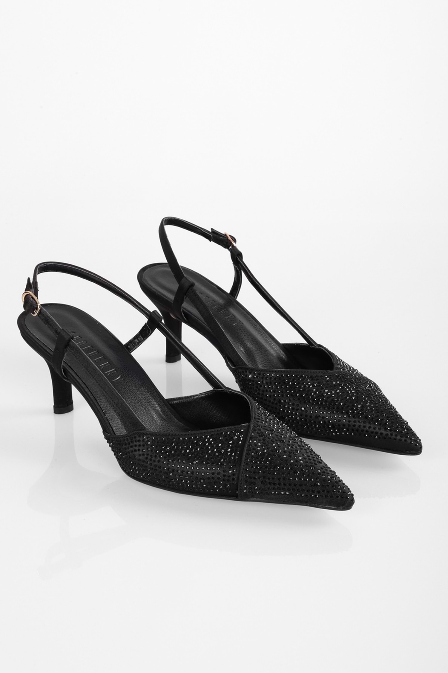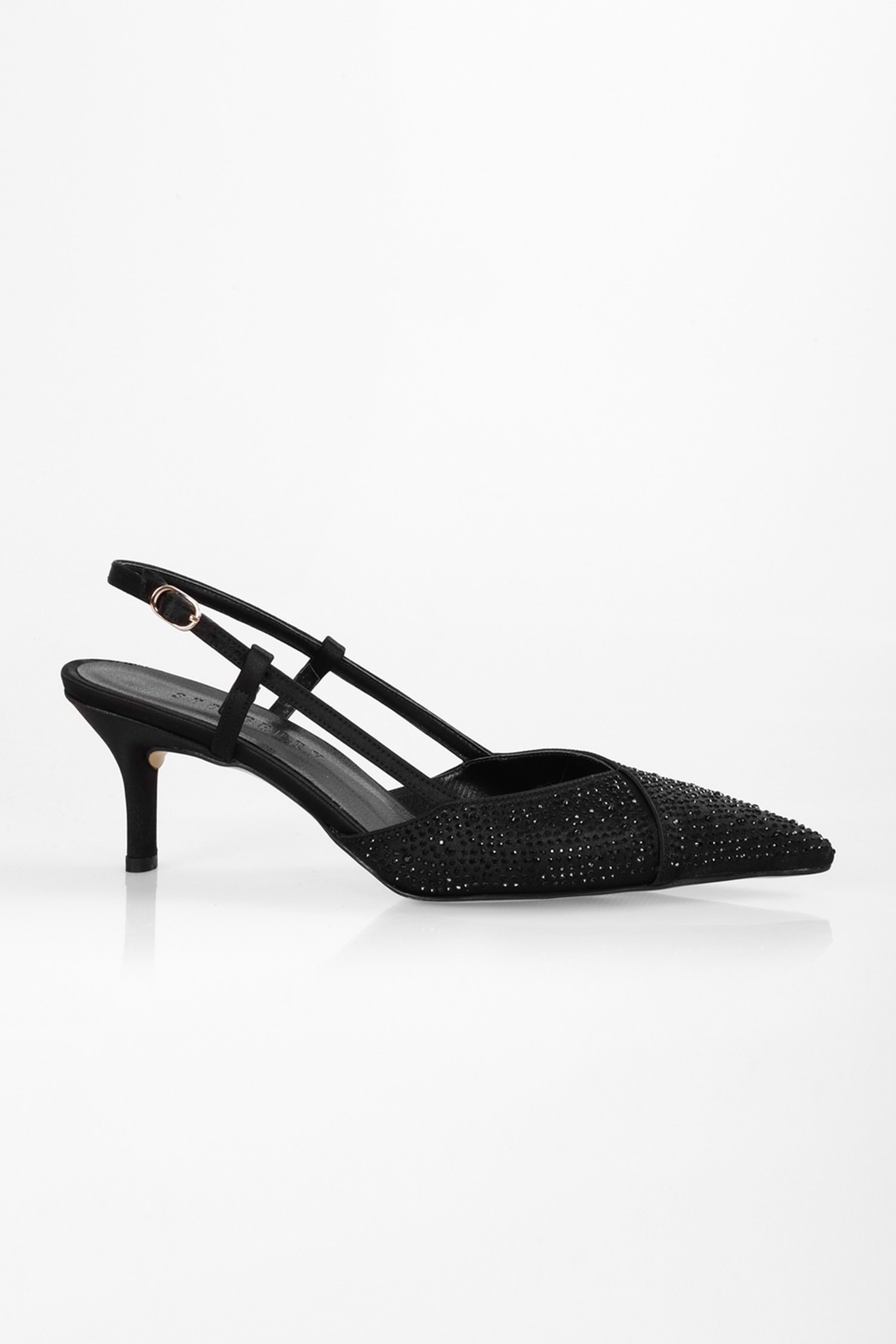 Kadın Rose Siyah Saten Taşlı Stiletto