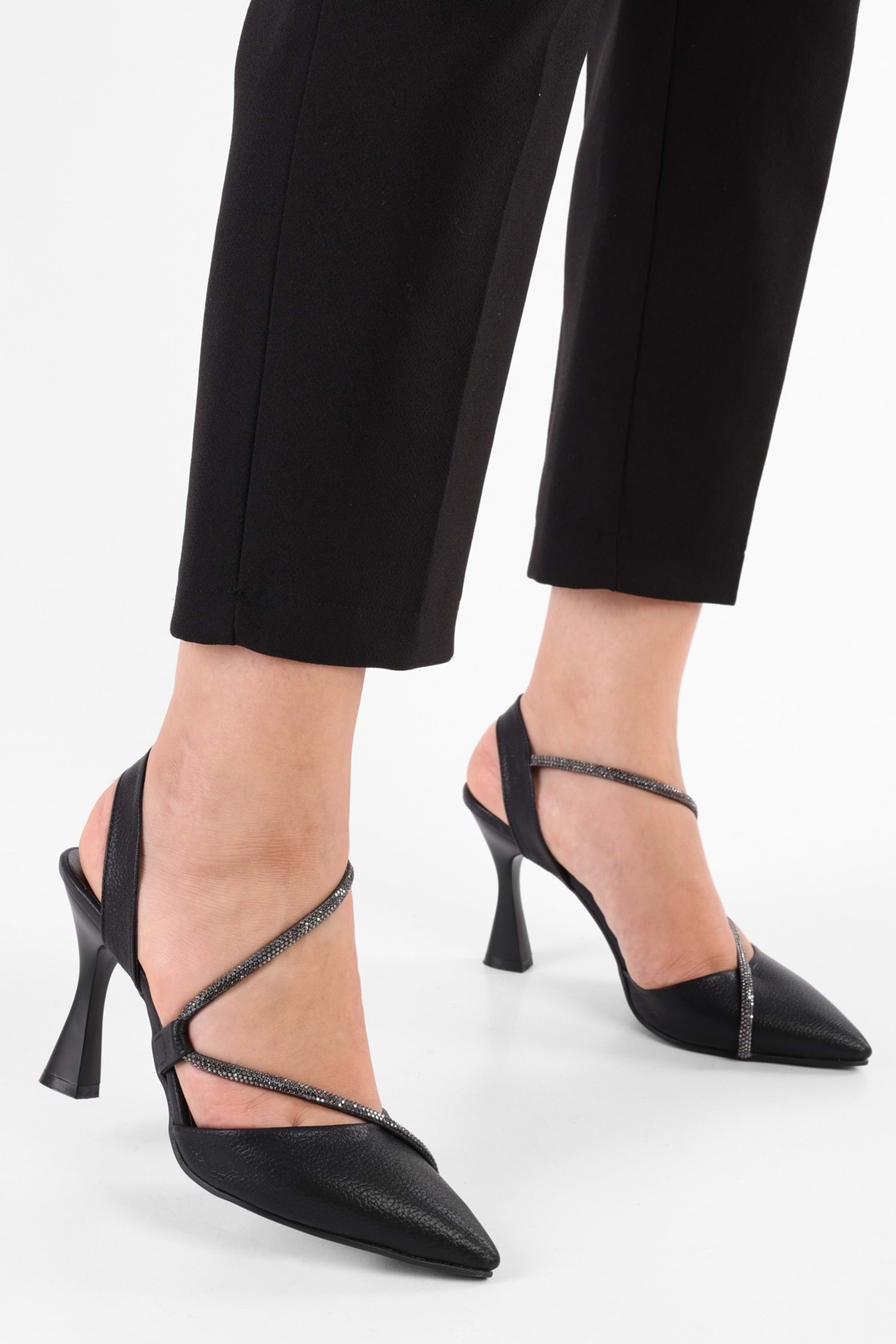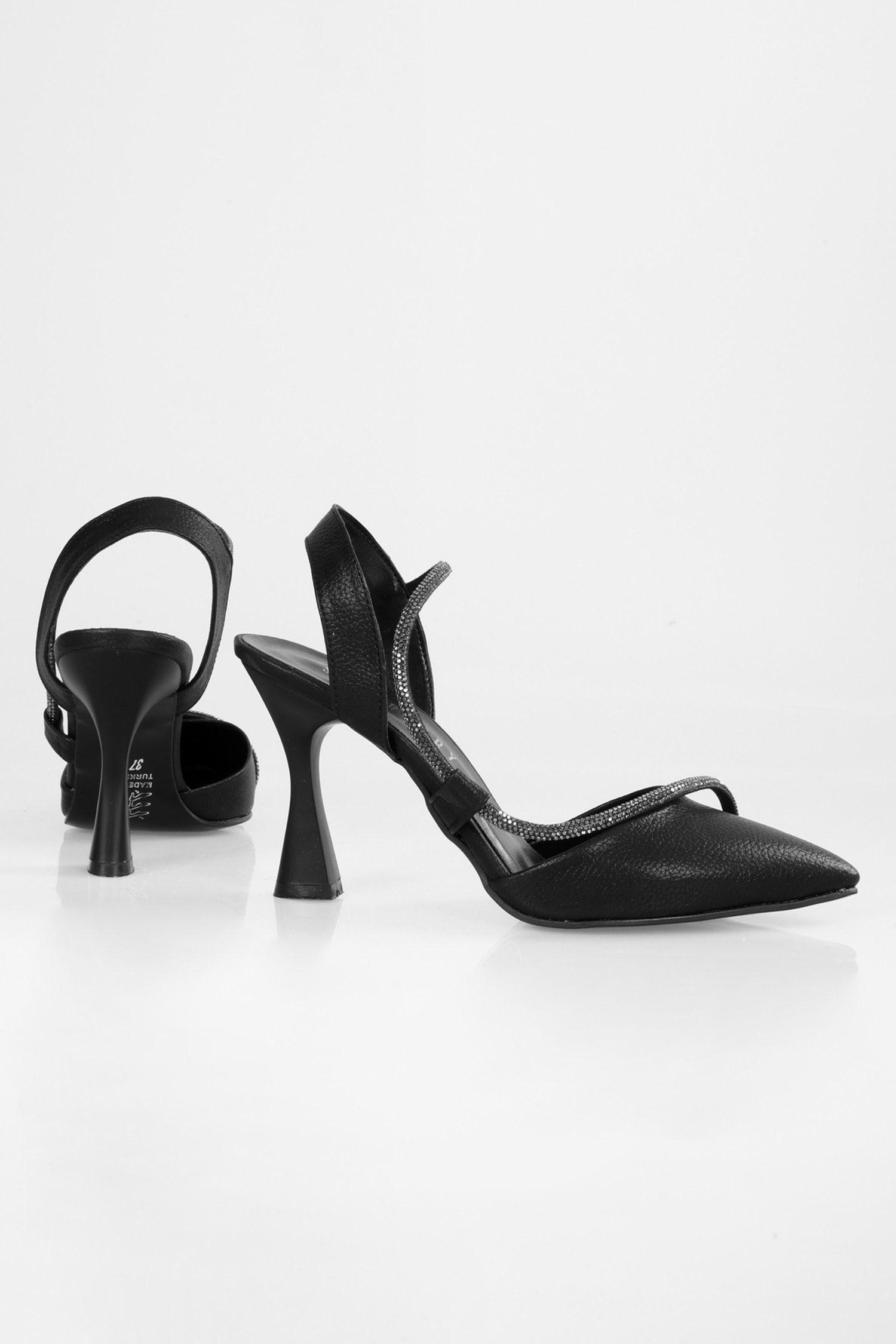 Biye detaylı, sivri burun stiletto. Kırışık parlak kumaş kullanılmıştır, kaliteli malzemeden üretilmiştir. Şampanya topuk, topuk boyu 8,5 cm'dir. Şık bir tasarımı mevcuttur. Oldukça konforludur. Ürün görselleri Shoeberry Markası tarafından çekilmiştir. %100 el işçiliği ile Shoeberry Atölyesinde üretilmiştir.