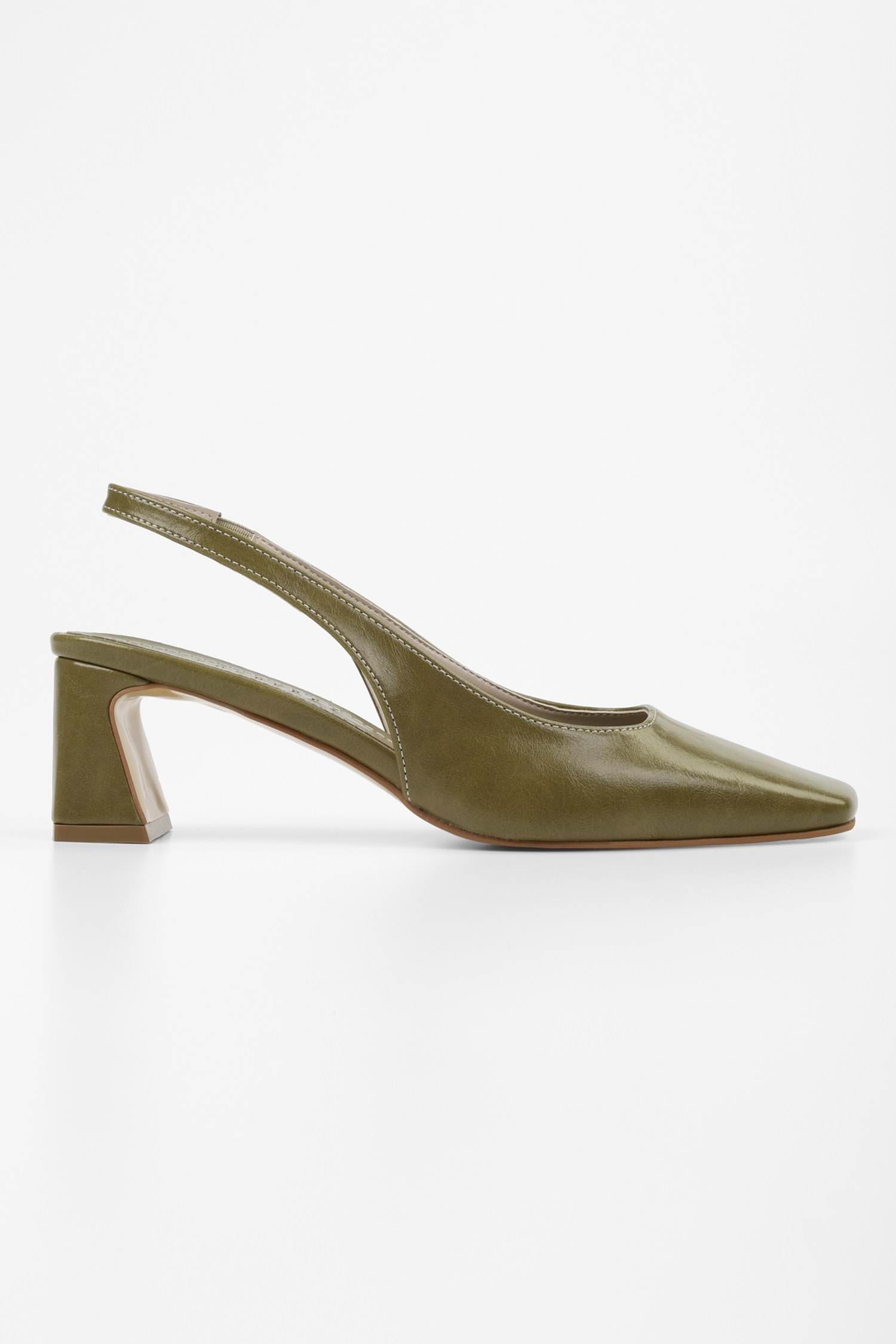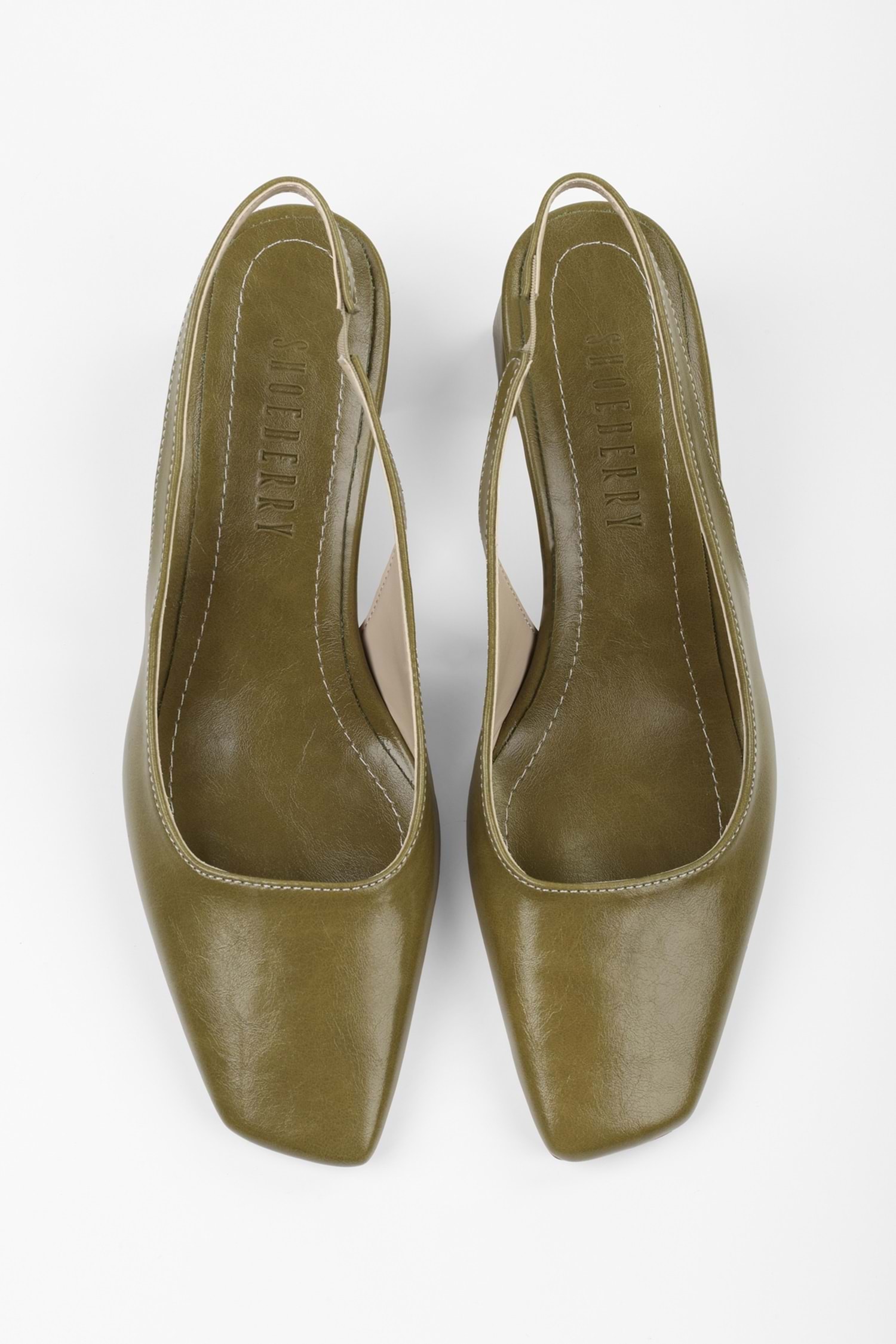 Kadın Vinte Yağ Yeşili Cilt Küt Burunlu Stiletto