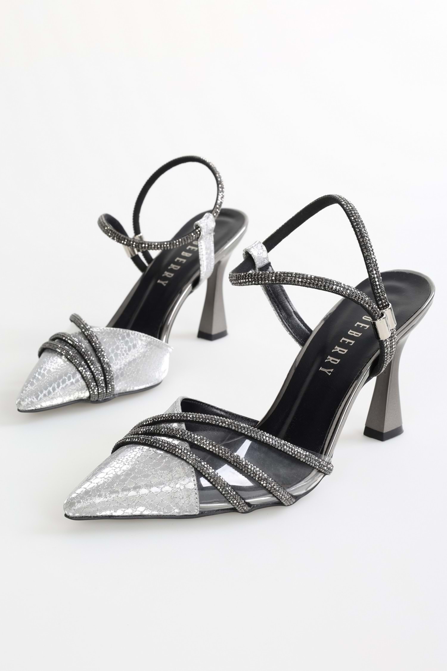 Kadın Julde Platin Petek Taşlı Topuklu Ayakkabı