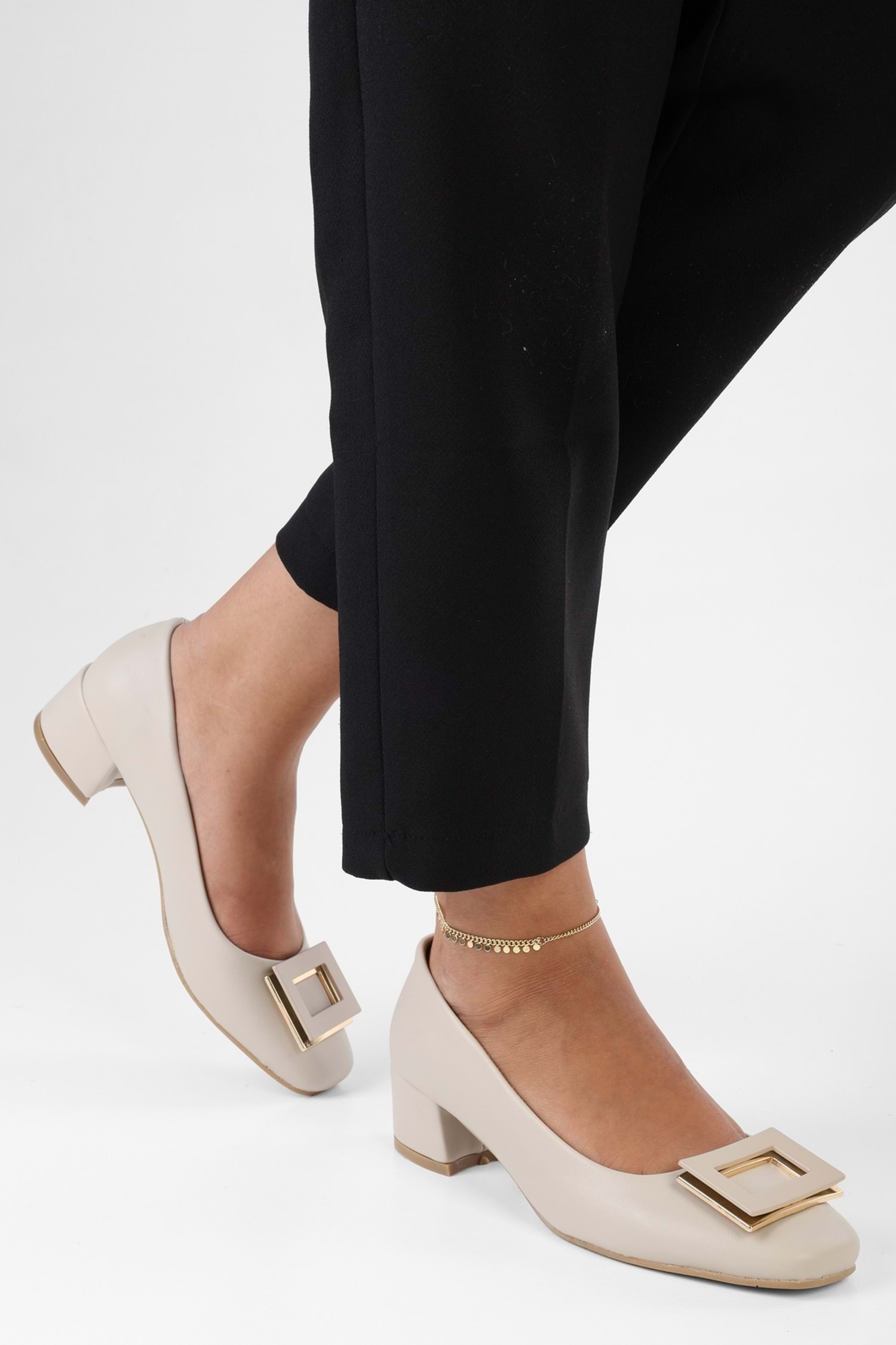 Kadın Pluto Ten Cilt Tokalı Topuklu Ayakkabı