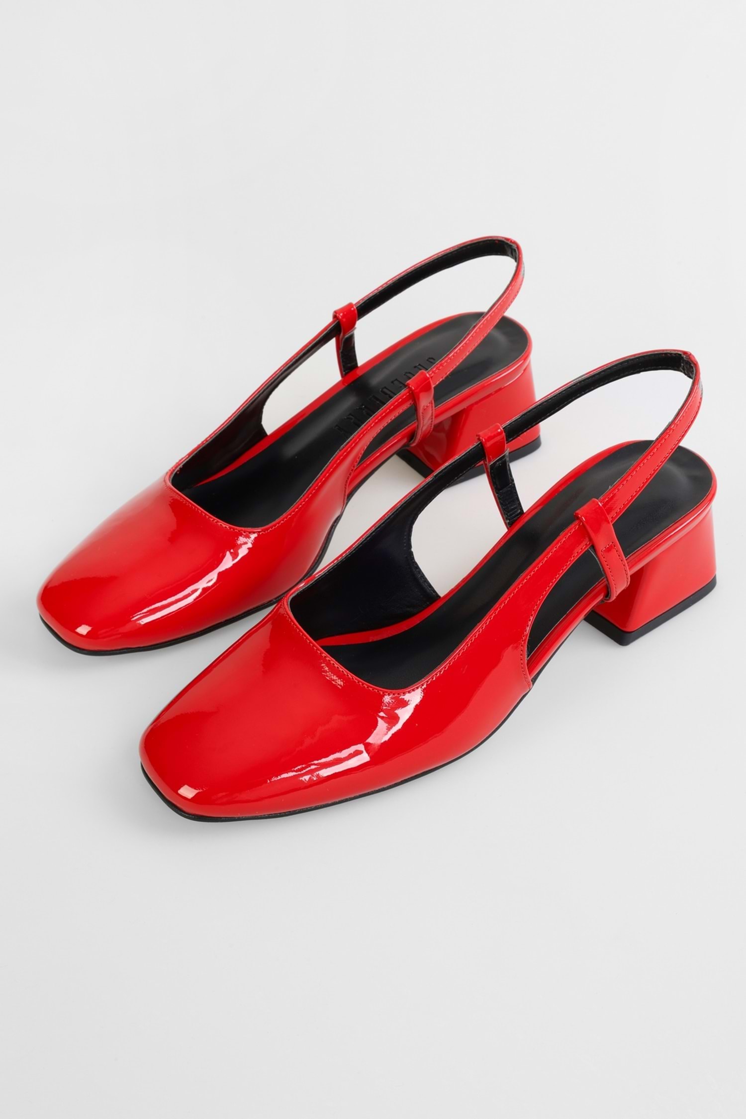 Kadın Sieno Kırmızı Rugan Küt Burun Topuklu Ayakkabı