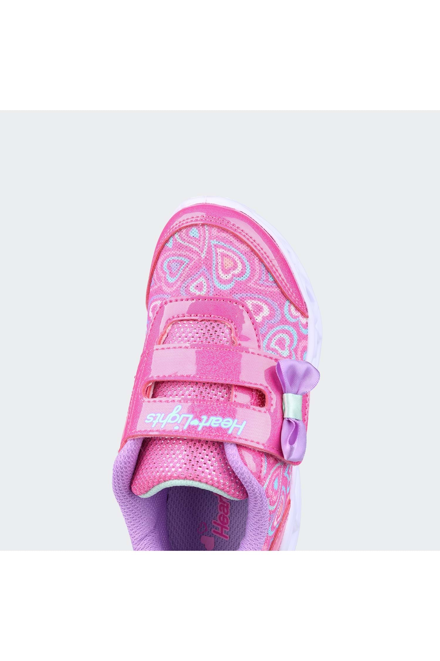 Skechers Heart Lights® - Boogie Land ile büyülü bir zevkle ışıldayın. Bu ışıklı tasarım, sentetik kaplamalı kalp desenli file saya, fiyonk detaylı ayarlanabilir üst bant kapatma ve kalp şeklinde ışıklı orta tabana sahiptir.