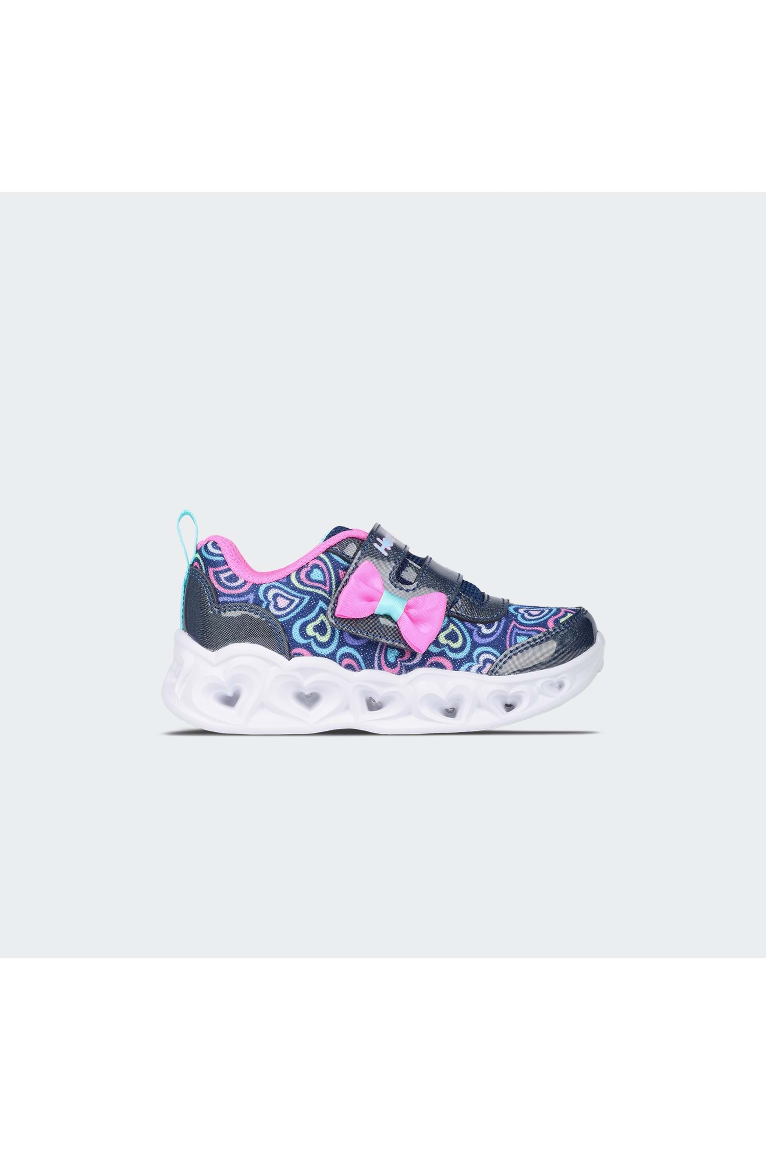 Skechers Heart Lights® - Boogie Land ile büyülü bir zevkle ışıldayın. Bu ışıklı tasarım, sentetik kaplamalı kalp desenli file saya, fiyonk detaylı ayarlanabilir üst bant kapatma ve kalp şeklinde ışıklı orta tabana sahiptir.