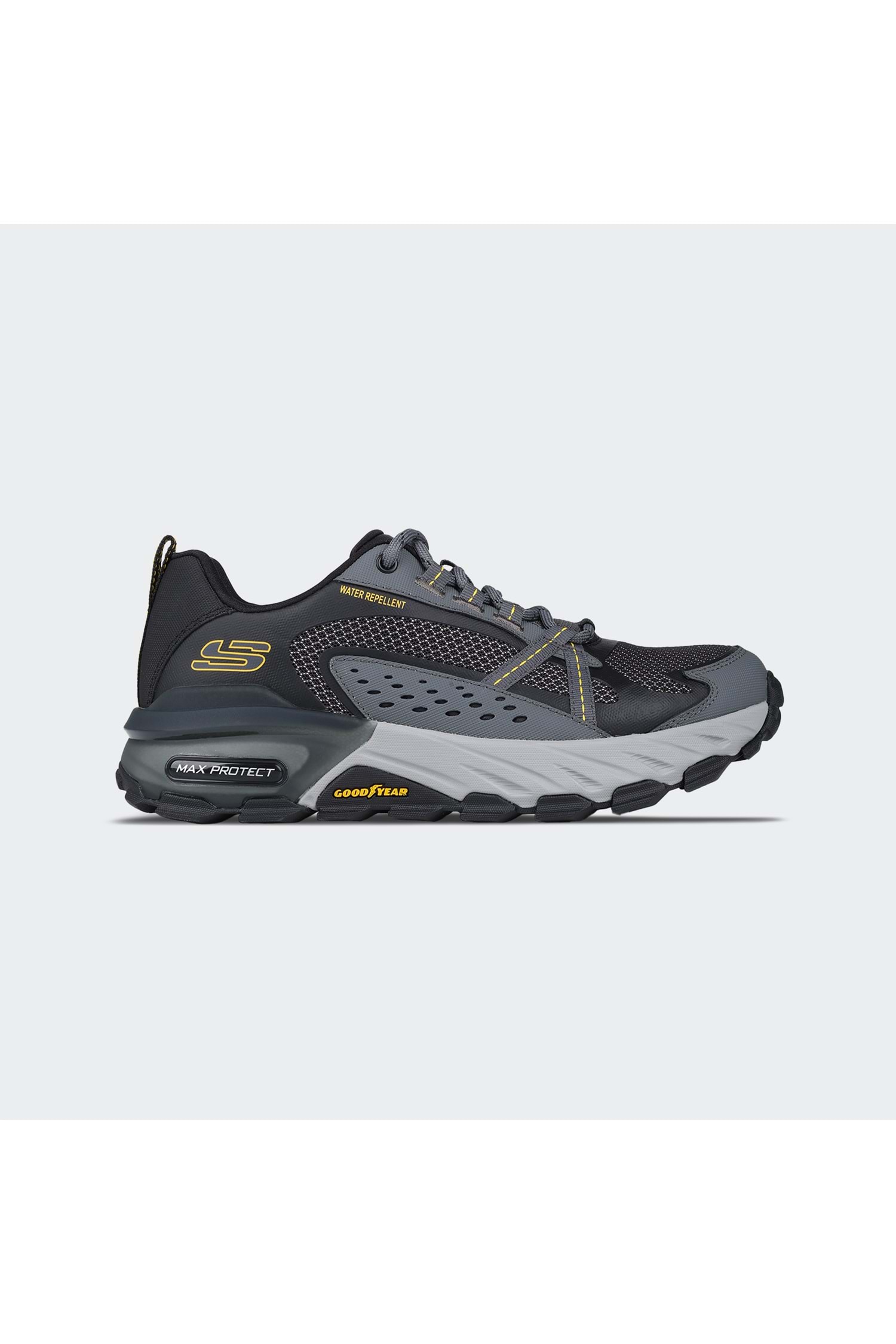 Her yönüyle ayaklarınızı dış etkenlerden koruyarak gün boyunca rahat ettirecek bir spor ayakkabı arayışındaysanız Skechers Max Protect erkek spor ayakkabı sizin için doğru seçim olabilir. Sayasında kullanılan sentetik file saya ve deri karışımı oldukça dayanıklı ve konforludur. Su kaydırma özelliği bulunan bu saya, üzerinde düşen damlaları kumaşından uzaklaştırarak ayaklarınızın gün boyunca kuru kalmasını sağlar.