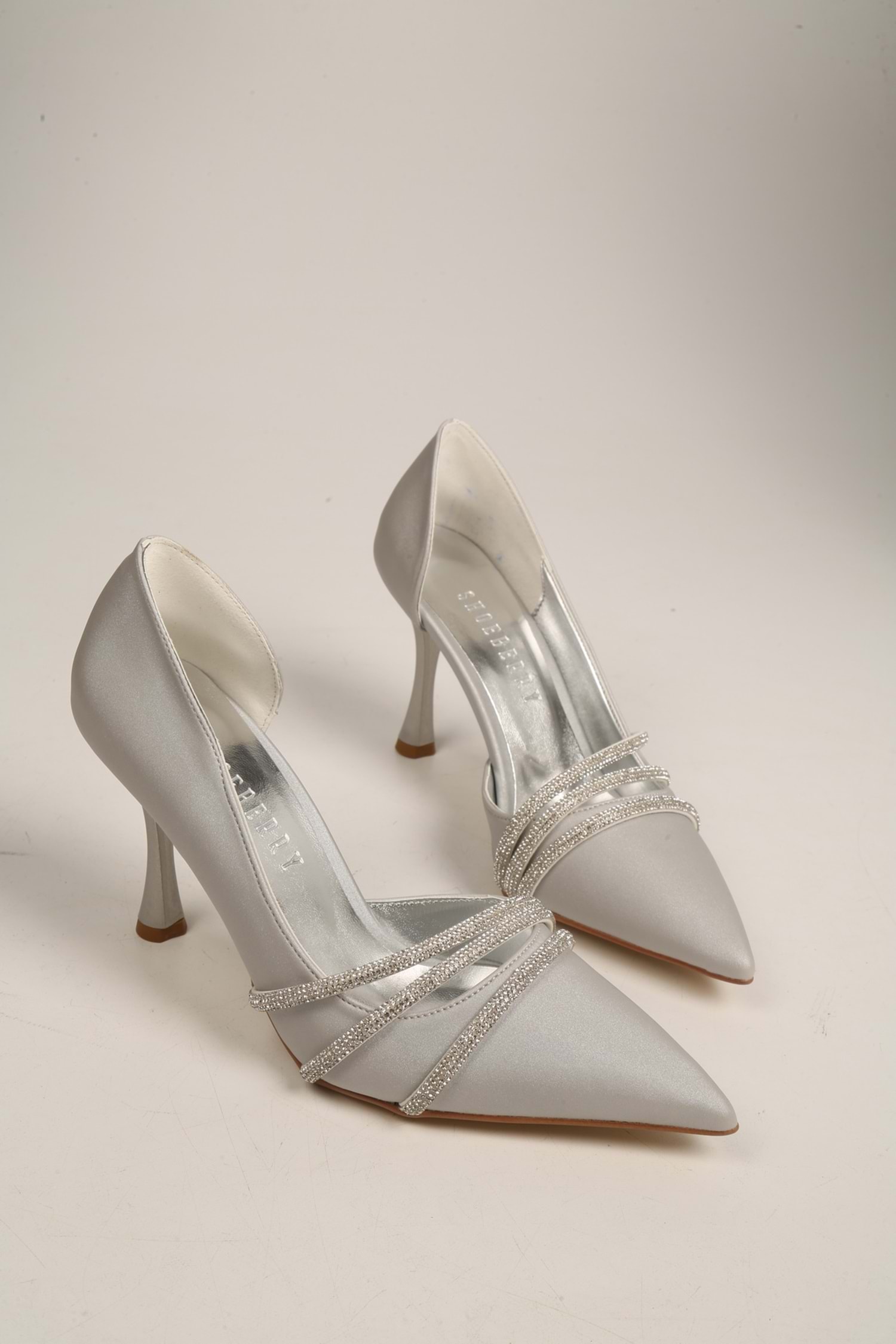 Kadın Aern Gümüş Saten Taşlı Topuklu Ayakkabı Stiletto