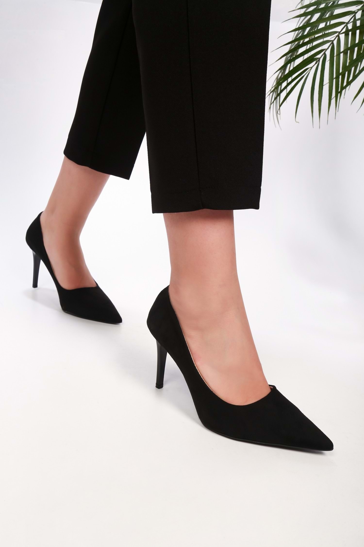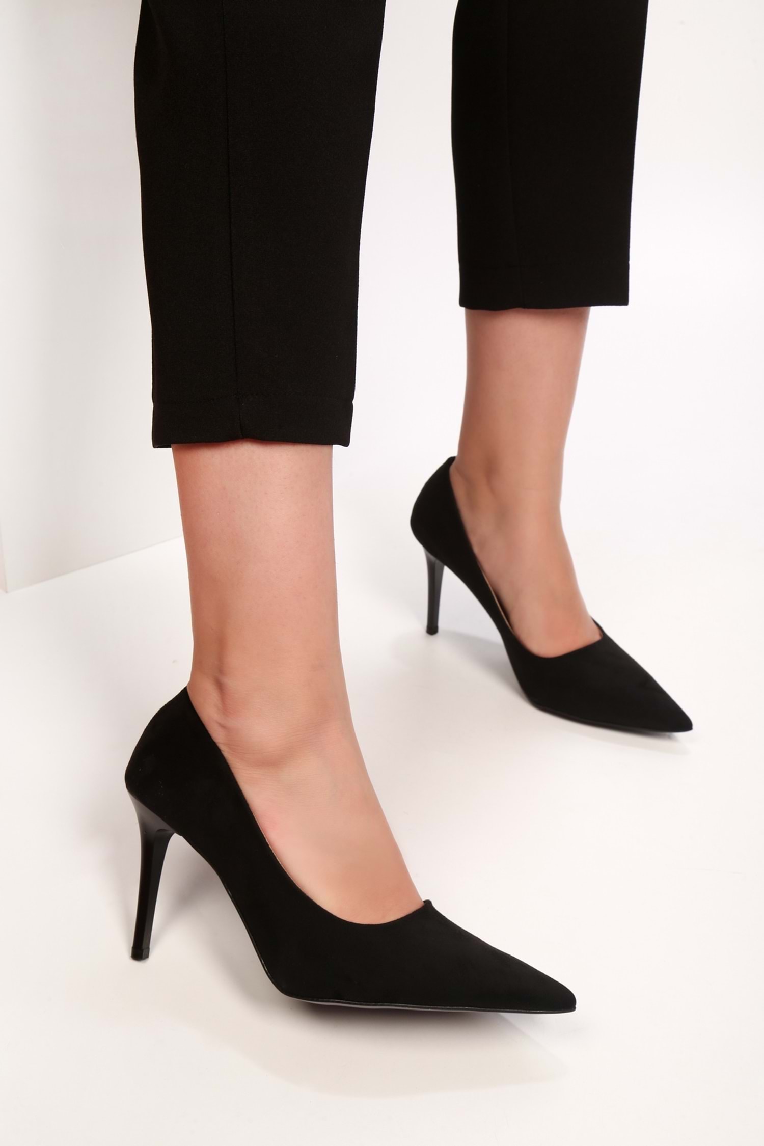 Kadın Podelta Siyah Süet Klasik Topuklu Stiletto